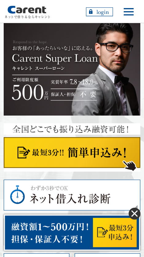 年7.8%~18.00% 1万~500万円 最短即日 不要 不要