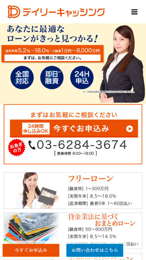 デイリーキャッシング 年5.2%~14.5% 200万~5,000万円 最短即日 不要 不要