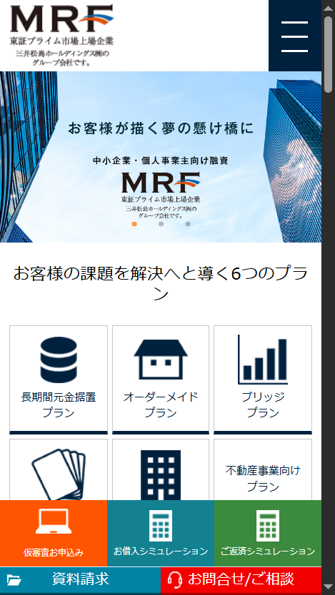 | MRF | 4.00~9.90% | 100万円~3億円 | 3.3% | 数日程度 | 1年~(プランによる) | 西日本エリア |