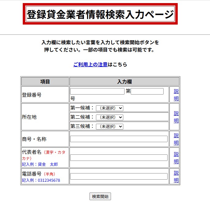 貸金業登録番号は、こちらの登録貸金業者情報検索サービスで調べられます。